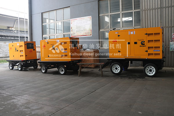 長沙某土建在我公司采購的三臺移動靜音柴油發電機組今日成功出廠,機組功率均為80KW,采用合資東風康明斯發動機動力,配備凱華無刷發電機。我公司生產的移動靜音發電機組噪音小,可隨車拖動,適用于戶外電力需求。下圖為機組出廠現場: