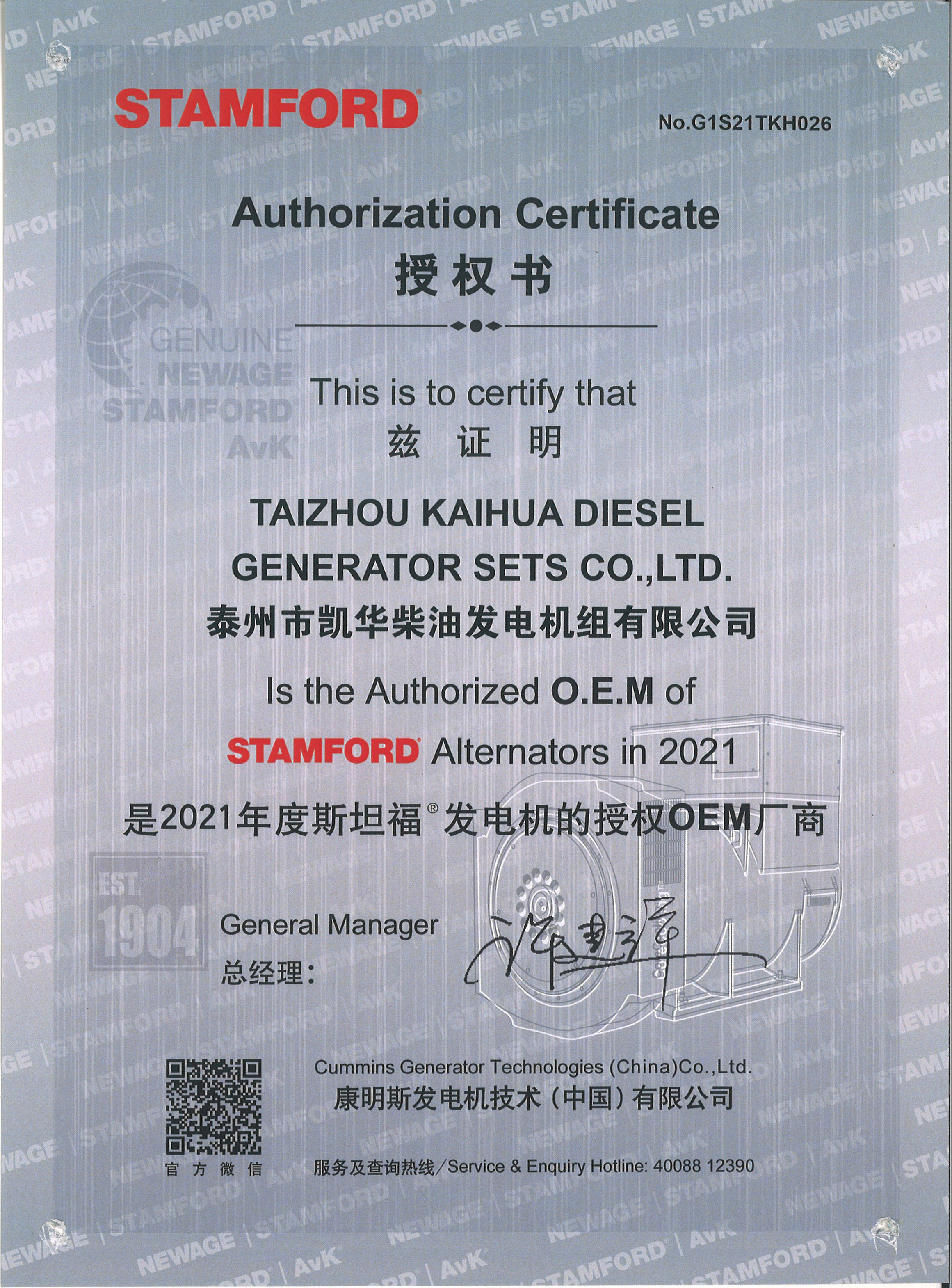 重慶康明斯OEM證書
